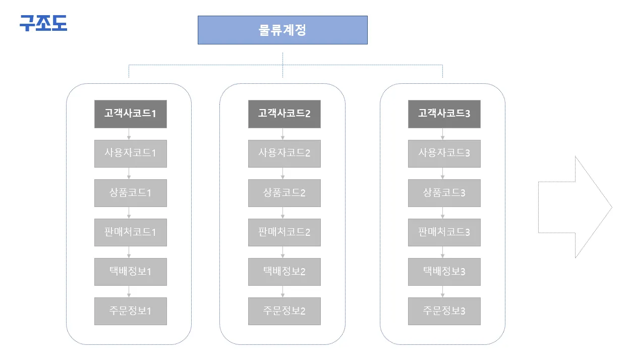 데이타가 고객사단위로 관리되어 저장되어 있습니다.