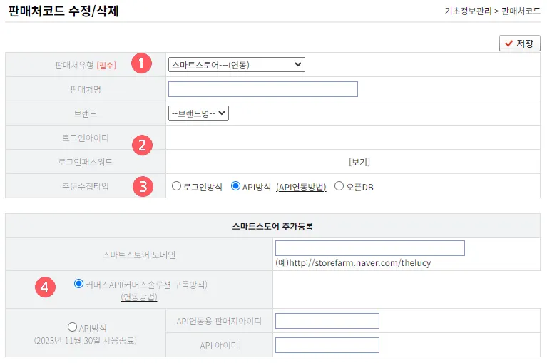판매처를 신규로 만든다면 등록버튼을 눌러 위와 같은 작업 창을 띄우세요.