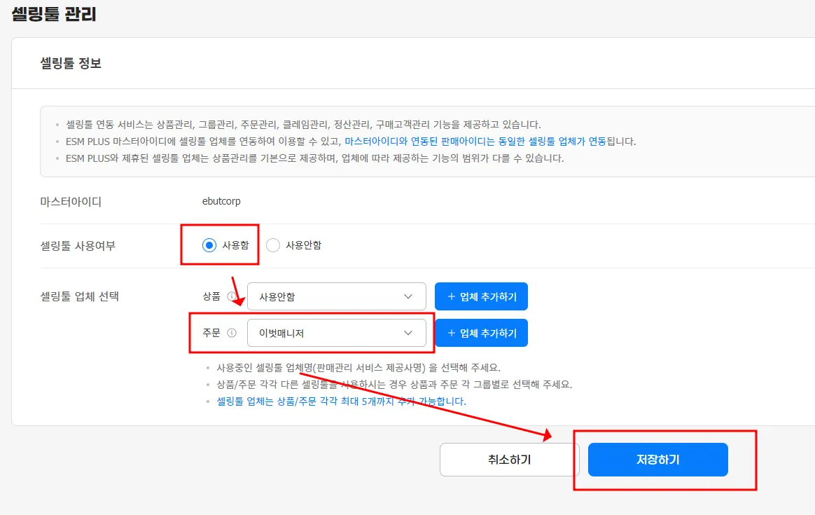 1.ESMPLUS에서 셀링툴 설정