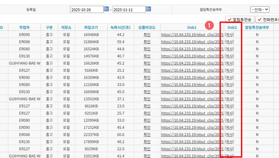 ③ 송장번호로 녹화된 영상을 브라우저에서 확인할 수 있습니다.