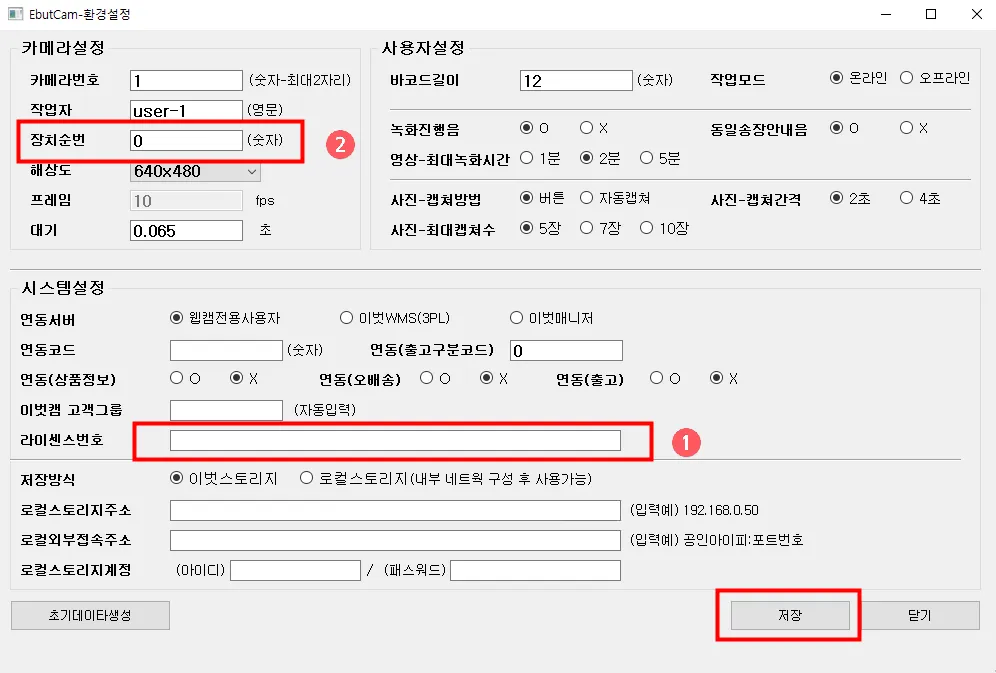 C:\ebutcam\dist\ec_clip_2.0\ec_config.exe 를 실행합니다.