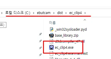 실행 경로 : 이벗캠루트폴더\dist\ec_clip4\ec_clip4.exe