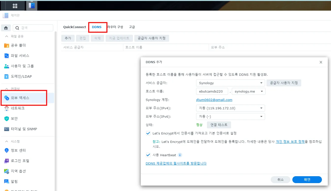 접속 주소 예): http://192.168.0.38:5000/ , DDNS주소:5000