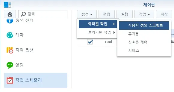 제어판>작업스케줄러>생성>예약된작업>사용자정의 스크립트