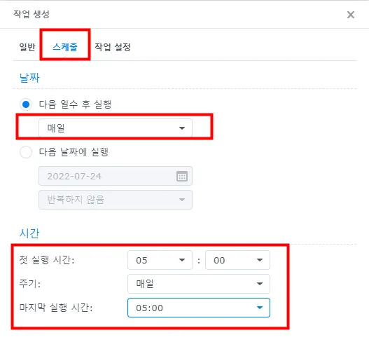 제어판>작업스케줄러>생성>예약된작업>사용자정의 스크립트