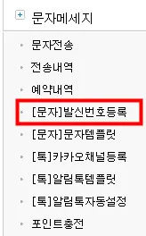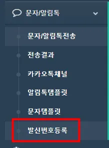 - 이벗의 사용하는 솔루션에서 ‘문자메세지 > 발신번호등록’ 메뉴로 이동합니다.