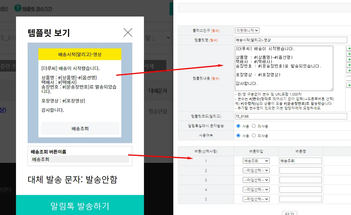 - 알리고 등록안내를 숙지 후 사용할 템플릿을 만드세요.