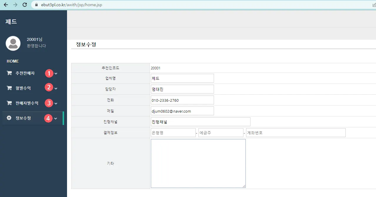 # 추천인 시스템 | - https://www.ebut3pl.co.kr/awith/login.html |