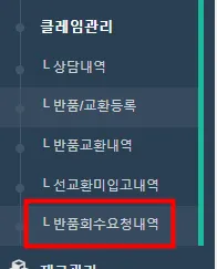 반품회수 신청내역 확인하기