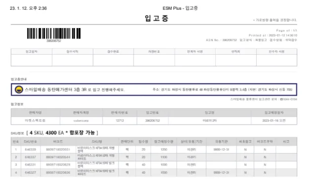 스마일배송으로 입고할 상품명과 수량, 입고예정일 메신저로 알려주세요.