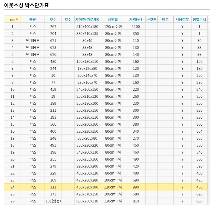 ■ 단가표 확인하기 —> http://www.ebut3pl.co.kr/html/boxlist.html